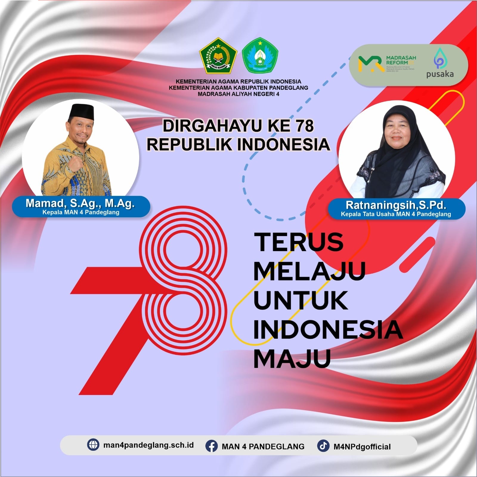 Selamat Hari Ulang Tahun yang ke-78, Republik Indonesia! Dirgahayu Indonesia! Di momen istimewa ini, mari kita merenungkan perjalanan perjuangan dan pencapaian yang telah membentuk bangsa kita. Bersama, kita berkomitmen untuk terus menjaga dan memajukan negeri tercinta. Mari kita rayakan kebersamaan dalam semangat persatuan, menuju Indonesia yang lebih maju, adil, dan berdaya. Merdeka!