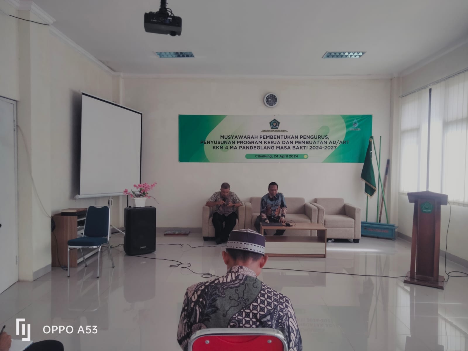 PANDEGLANG – Musyawarah pembentukan pengurus baru, rencana kerja, dan AD/ART KKM 4 MA. Pandeglang untuk masa bakti 2024-2027 sukses dilaksanakan pada hari Rabu, 24 April 2024. Acara berlangsung di aula Asrama MAN 4 Pandeglang dan dihadiri oleh para Kamad (Kepala Madrasah), serta berjalan lancar tanpa kendala.