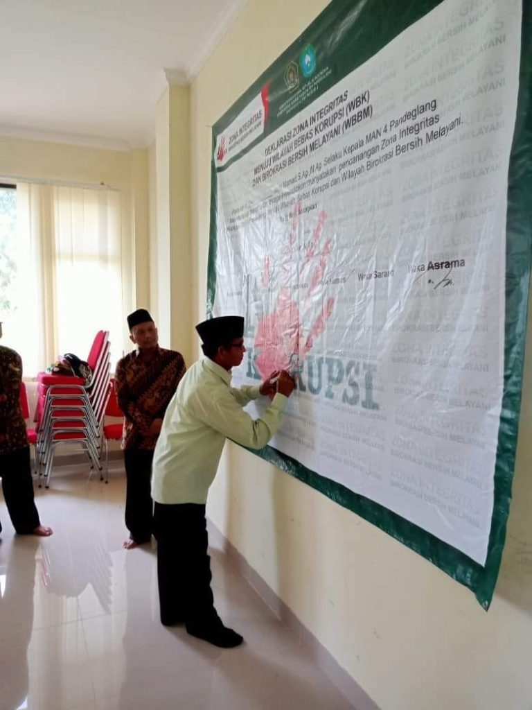 “Dengan penandatanganan ini, kami berkomitmen untuk meningkatkan integritas, kualitas, dan pelayanan prima di MAN 4 Pandeglang dengan mengedepankan Wilayah Bebas Korupsi (WBK) dan Wilayah Birokrasi Bersih Melayani (WBBM), sebagai fondasi utama yang akan memandu setiap langkah kami menuju transformasi pendidikan yang inklusif dan berkualitas,” ungkapnya dengan penuh semangat.